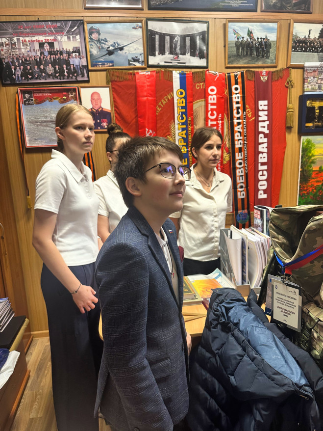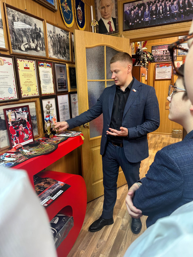 Экскурсию для школьников провел заместитель председателя Общественной палаты Саратовской области, руководитель Саратовского регионального отделения “БОЕВОГО БРАТСТВА” Сергей Авезниязов. Он подробно рассказал о деятельности организации, ее целях и задачах, а также провел с учениками патриотическую беседу, направленную на воспитание у подрастающего поколения чувства гражданской ответственности и любви к Родине.