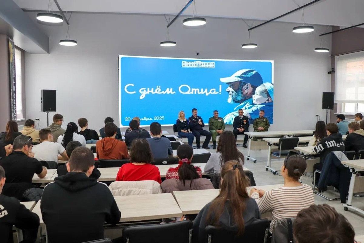 Со студентами встретились ветераны “БОЕВОГО БРАТСТВА” Сергей Артюшенко и Эдуард Бараев, а также ветераны Ассоциации ветеранов СВО Александр Махнёв и Евгений Абатуров. Они поделились личными историями о службе, семейных традициях и силе отцовского примера. Ветераны рассказали, как роль отцов, дедов и наставников помогала им в самые трудные моменты — на фронте и в жизни.