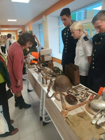 Сергей Тяжелков и кадет 5-го курса Федор Акатов представили выездную выставку, созданную на базе музея Боевой славы в Петрозаводском президентском кадетском училище.