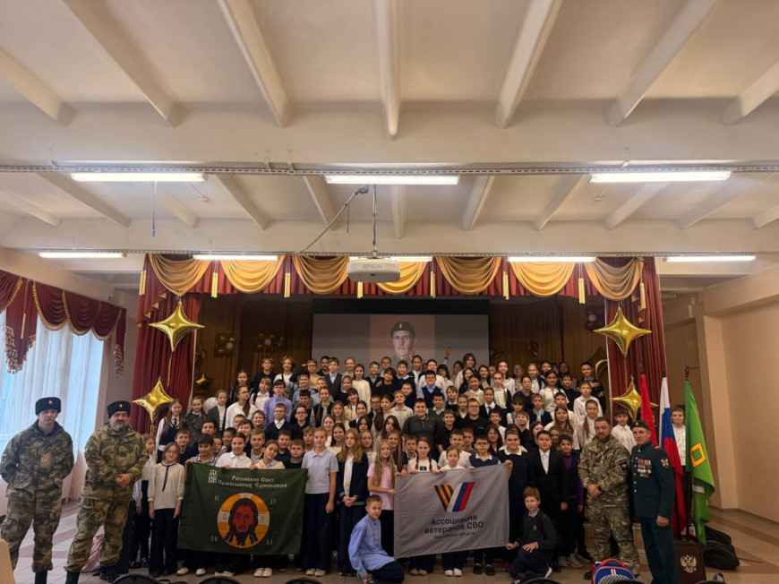 22 октября ветераны СВО Пушкинского отделения «БОЕВОГО БРАТСТВА» Леонид Соболев, Александр Брюшенко и представители «Великого братства казачьих войск» Сергей и Михаил Нагорные провели урок мужества в образовательном комплексе №3.