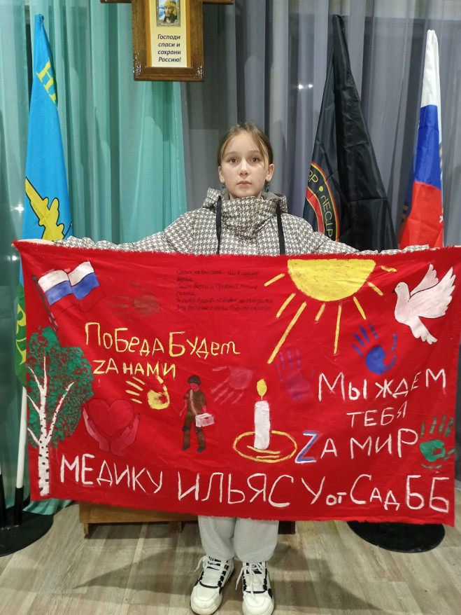 “За три с половиной года войны дети нарисовали более 100 флагов, которые разлетелись по всему фронту и госпиталям. С фронта солдаты шлют детям видеоприветы и благодарности за внимание и заботу. А флаги напоминают им о доме, о семье, ради которых каждый день наши бойцы рискуют своей жизнью”, - отметила Лариса Колчина.