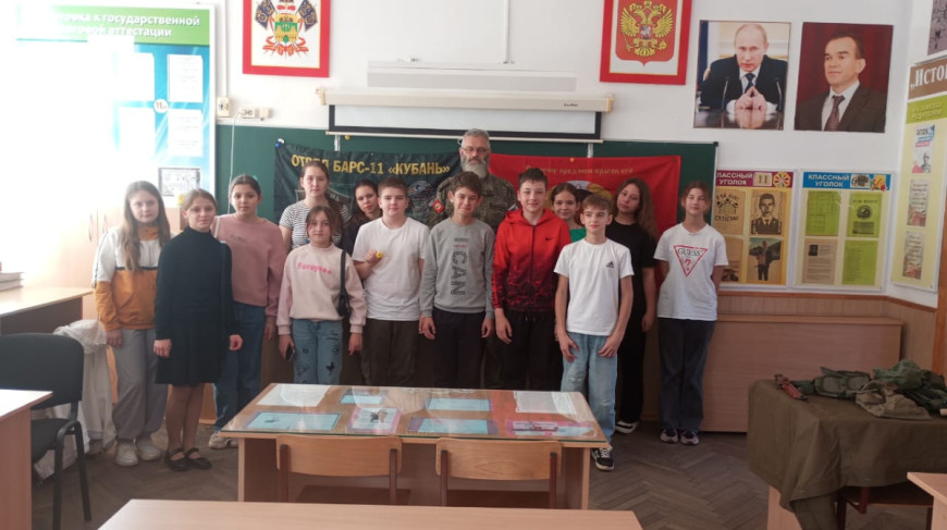 “Цель урока — формирование у школьников гражданской позиции, патриотизма, уважения к истории своей страны и людям, стоящим на страже её безопасности”, — сказал Игорь Быковский.