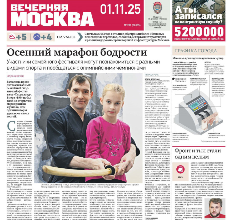 1 ноября в газете «Вечерняя Москва» вышла статья «Фронт и тыл стали единым целым» на основе материала, предоставленного председателем «Волонтерской роты «БОЕВОГО БРАТСТВА» Станиславом Кузьменко.
