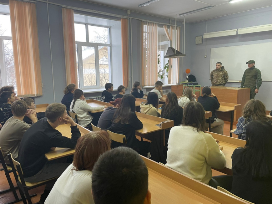 5 ноября в школе №49 в Печоре ветераны СВО, члены Печорского отделения “БОЕВОГО БРАТСТВА” Куликова С. М. и Асташенк М.Н., провели урок мужества, посвященный военной службе.
