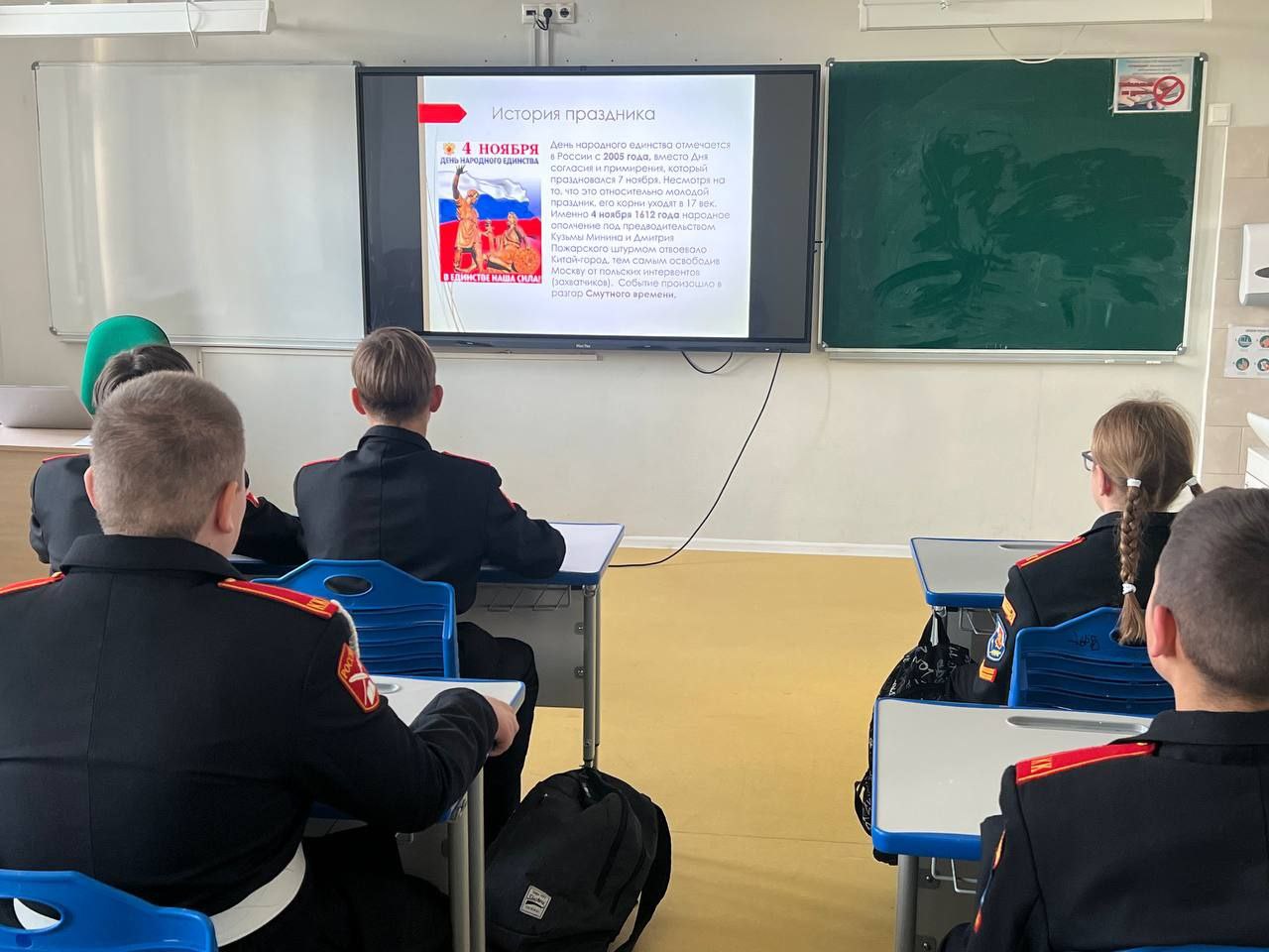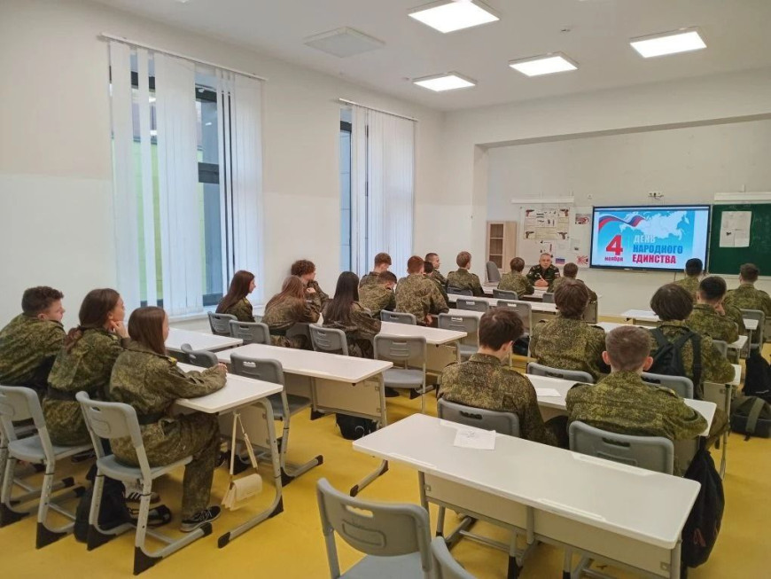 5 ноября в Москве члены Внуковского отделения «БОЕВОГО БРАТСТВА» Наталья Сабирова и Сергей Краснопир провели четыре урока мужества в честь Дня народного единства в кадетском корпусе школы №1788.