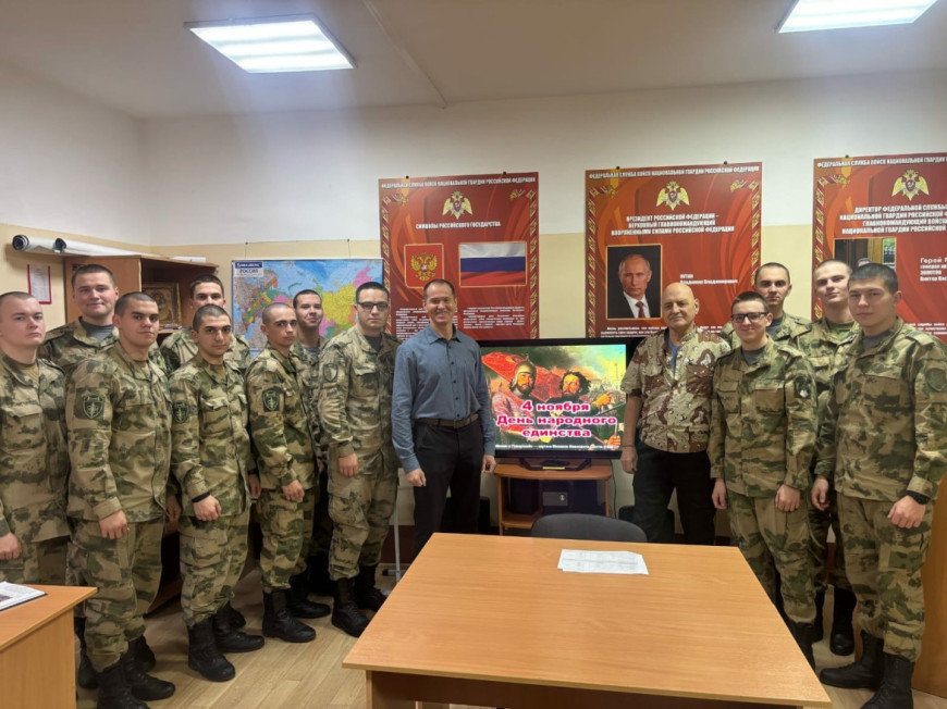 3 ноября, в преддверии Дня народного единства, представители Кировского областного «БОЕВОГО БРАТСТВА» ветераны боевых действий Владимир Помаскин и Сергей Титов встретились с военнослужащими по призыву Росгвардии.