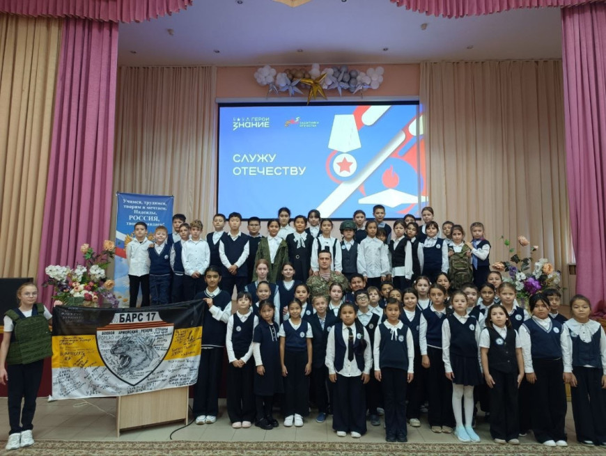 Роман Ежов рассказал ребятам о дружбе солдат независимо от места, из которого они пришли служить, о сплоченности участников Спецоперации. Продемонстрировал основную экипировку солдат и рассказал о добровольческом отряде БАРС-17.