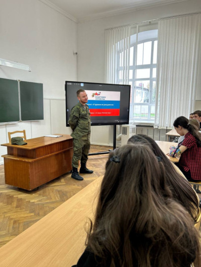 Гостем в гимназии №5 Майкопа стал участник Специальной военной операции, ветеран “БОЕВОГО БРАТСТВА” Эдуард Бараев.