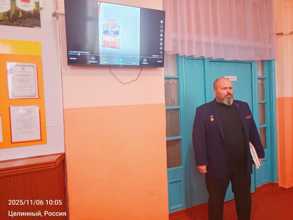 7 ноября для учеников 5-11=х классов в школе села Целинное Троицкого района прошёл урок мужества «Подвиг во имя жизни».