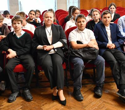 Началась встреча с дискуссии с учащимися 7-8 классов школы №58 о хрупкости мира, о причинах ненависти и о том, как важно сохранять человечность в современном мире.