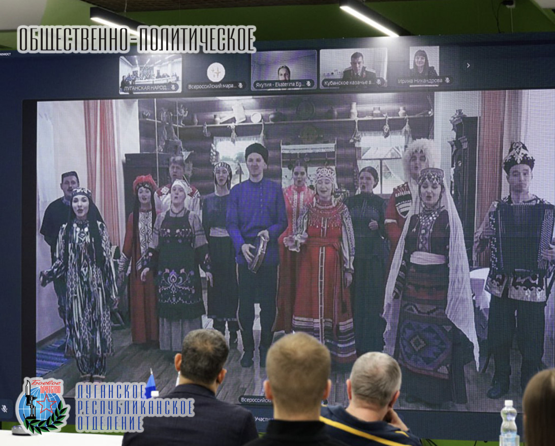 На основной площадке мероприятия в луганском Доме молодежи собрались представители национальных культурных обществ ЛНР, общественники и активисты. С помощью видеоконференцсвязи к площадке подключились представители Московской, Ленинградской, Астраханской, Владимирской, Вологодской, Омской, Челябинской областей, Краснодарского края, Красноярского края, Санкт-Петербурга и Ростова-на-Дону, республик Марий Эл, Татарстан Удмуртия, Саха (Якутия).