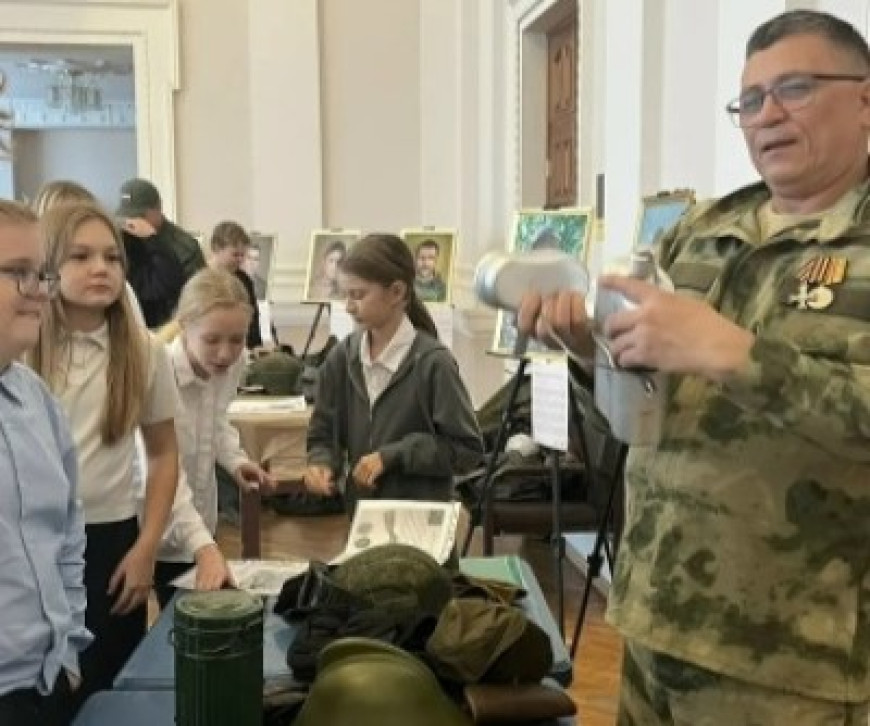7 ноября ветераны Жигулевского отделения «БОЕВОГО БРАТСТВА» Игорь Синегуб и Вячеслав Гурьянов провели урок мужества для учащихся 6-го класса школы №14 на выставке «В сердце и памяти» в Жигулёвском дворце культуры.