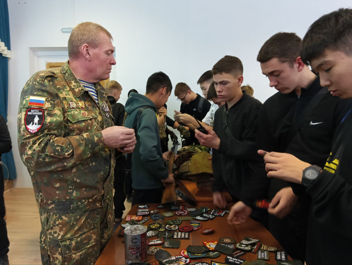 В рамках встречи ребятам была представлена выставка, на которой можно было увидеть различные образцы оружия, шевронов, военной амуниции и литературы. Особый интерес у студентов вызвали предметы, привезенные из зоны Специальной военной операции.