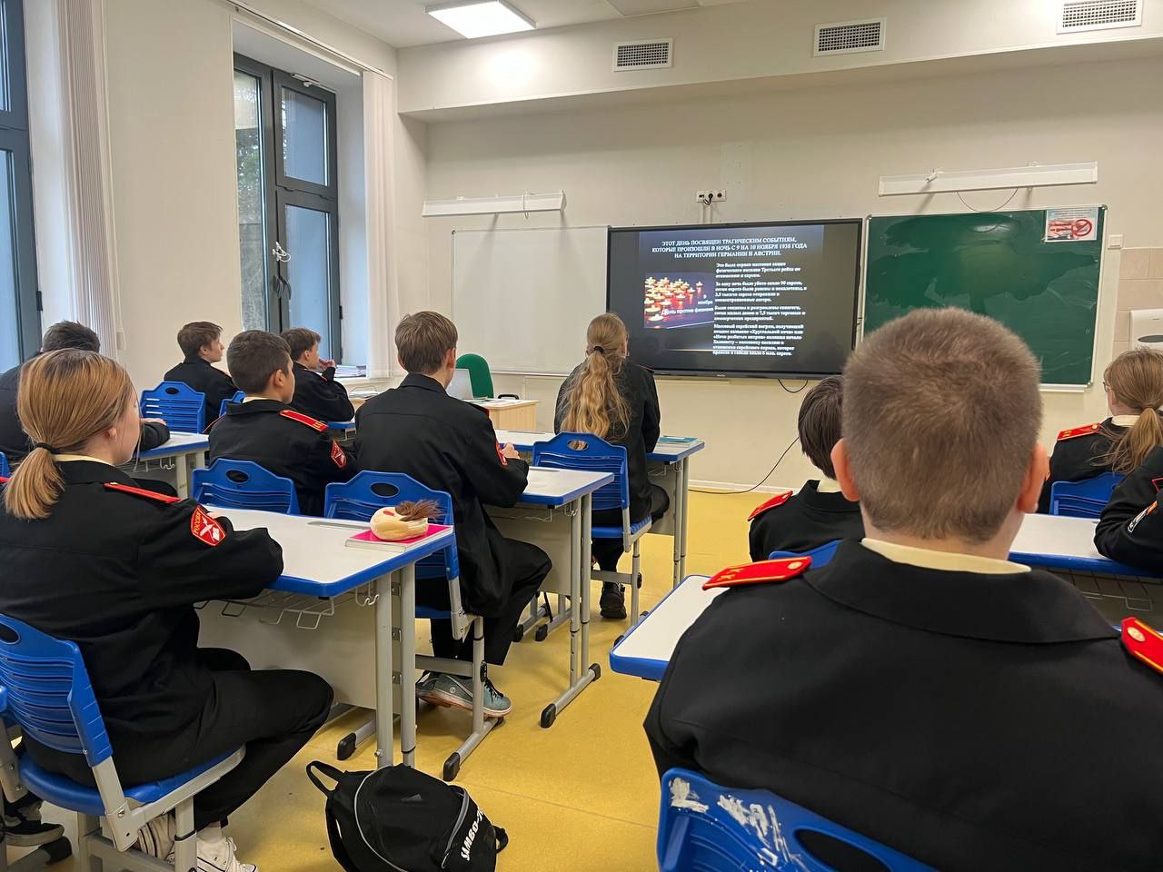14 ноября в Москве, в кадетском корпусе школы №1788, представители Внуковского отделения «БОЕВОГО БРАТСТВА» Наталья Сабирова и Сергей Краснопир провели для кадет четыре урока мужества «Нет — неофашизму!» для кадет, приуроченных к Международному дню против фашизма, расизма и антисемитизма.