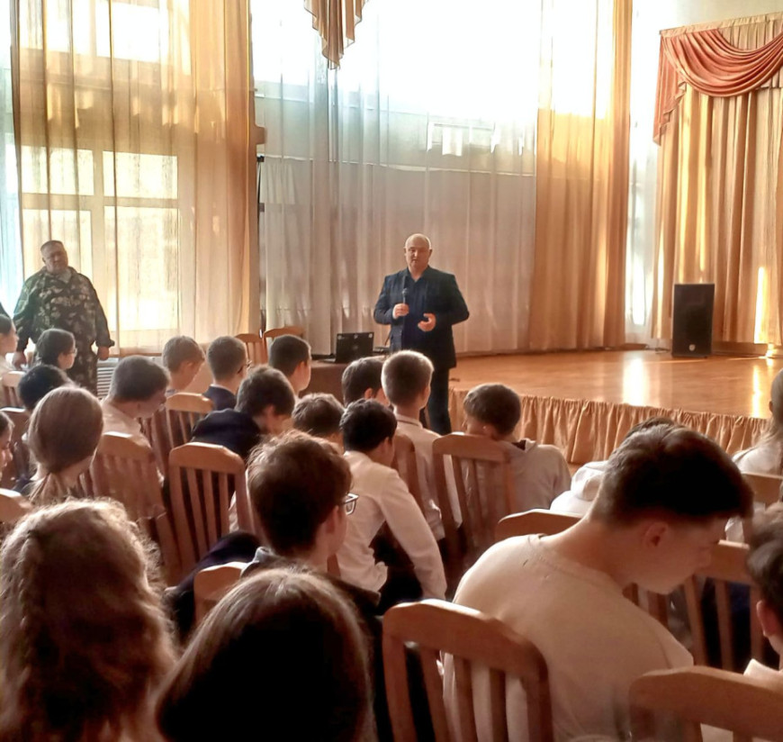 На занятии ветераны рассказали о подвигах сотрудников полиции и бойцов Росгвардии, которые погибли при выполнении служебного долга. На уроке ветераны, преподаватели и школьники объявили минуту молчания в память героев, ценою своей жизни защитивших мир и покой мирных граждан.