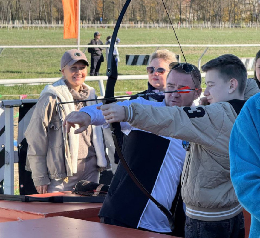 Инструктором на учебном месте по стрельбе из традиционного лука выступил ветеран “БОЕВОГО БРАТСТВА”, участник СВО Эдуард Бараев.