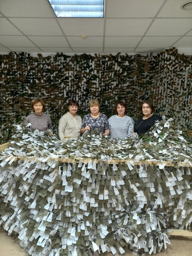 Женщины изготавливают маскировочные сети, которые ветераны Безенчукского отделения передают военнослужащим в зоне Специальной военной операции.