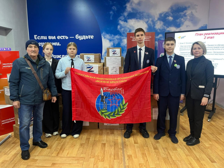 19 ноября директор школы № 2 Саранска Татьяна Суренкова передала гуманитарную помощь, которую собрали ученики, их родители и коллектив школы, членам Мордовского республиканского отделения «БОЕВОГО БРАТСТВА» Валерию Тужилину и Юрию Черябкину.