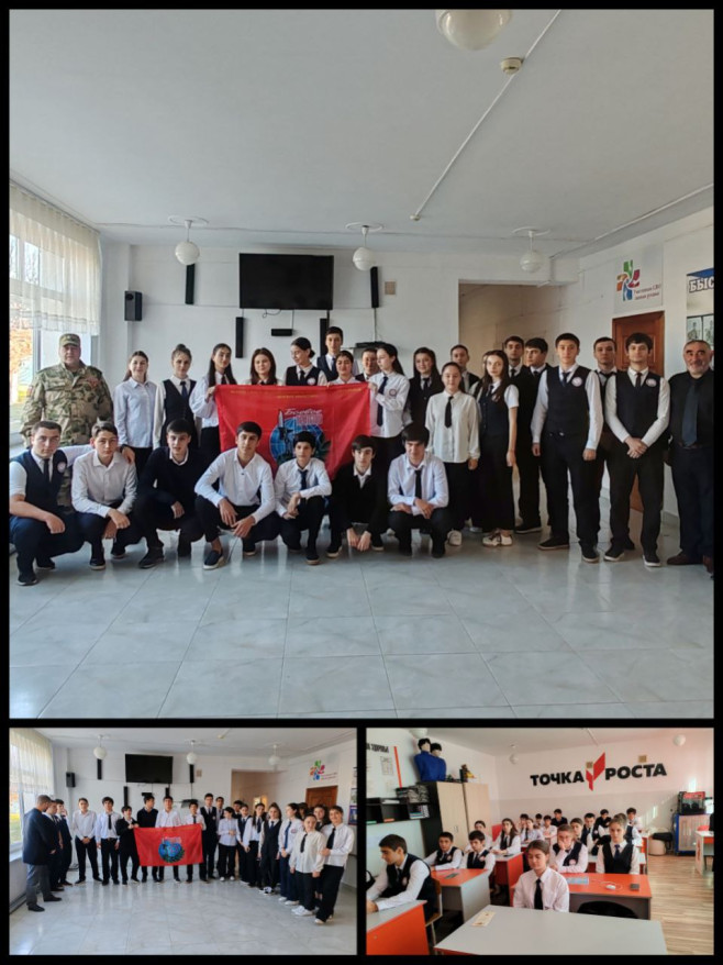 Анзор Ныров и Анзор Каншоев при кураторстве председателя Совета регионального отделения Геннадия Колодяжного вместе с курсантом Михайловской военной артиллерийской академии Асланом Атмурзаевым рассказали учащимся 10–11-х классов о требованиях для поступления в военные училища. Рассказали, как протекают курсантские будни и досуг, какие возможности для физического и культурного развития есть во время обучения, про права и обязанности курсанта и выпускника престижного военного ВУЗа.