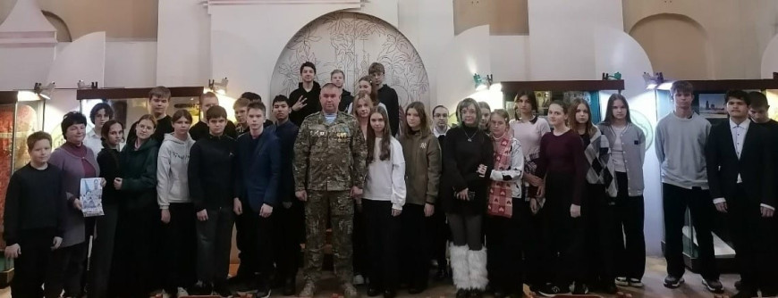 На вопросы учащихся отвечал заместитель председателя Осташковского местного отделения «БОЕВОГО БРАТСТВА» Сергей Никулин.  Он родился в Осташкове, окончил школу № 103, отслужил в Армии в составе  военно-десантных войск.  Ветеран рассказал о своей службе, участии во второй Чеченской войне, 25-летней работе в структурах МВД, включая отдел по борьбе с наркотиками, и современной общественной деятельности, о поездках с гуманитарными грузами в прифронтовые районы.