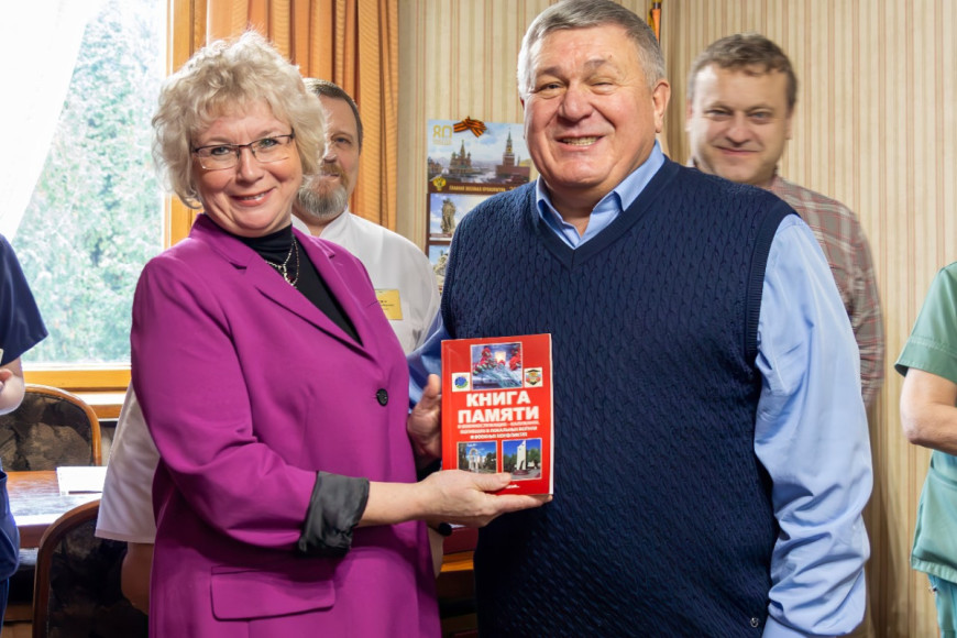 Он поблагодарил медперсонал центра за внимательное отношение к ветеранам, в том числе и Калужского областного отделения, и подарил руководству Центра «Книгу памяти о калужанах, погибших в локальных войнах и военных конфликтах». Эта книга была создана Калужскими городским и областным отделениями «БОЕВОГО БРАТСТВА».
