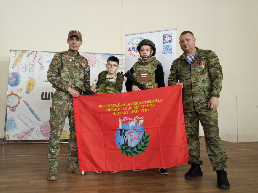 Занятие для 200 учеников 8-10 классов провели члены Владимирского областного отделения «БОЕВОГО БРАТСТВА», ветераны Специальной военной операции Александр Тезиков, Михаил Майоров и Валерий Преображенский.