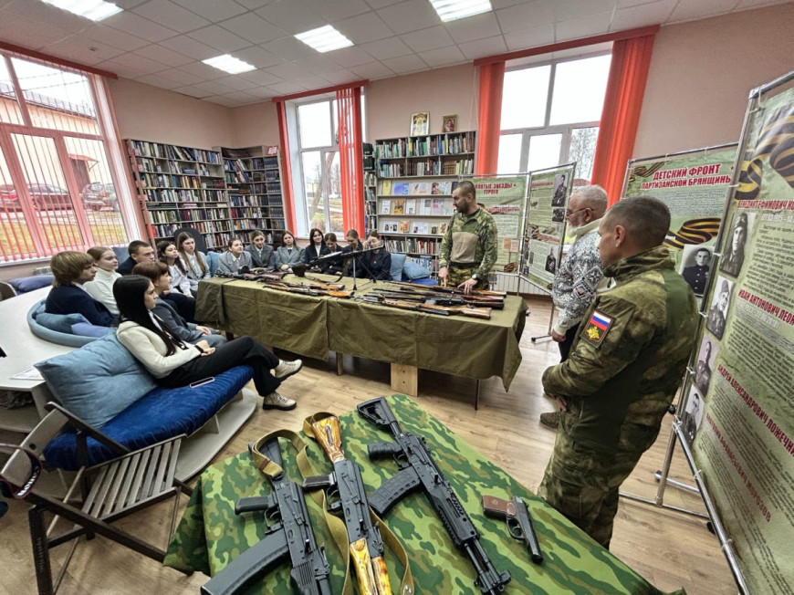 В завершение Александр Деменков, Александр Колесников и Николай Шилин провели обзор выставки макетов вооружения и ознакомили школьников с экспонатами.
