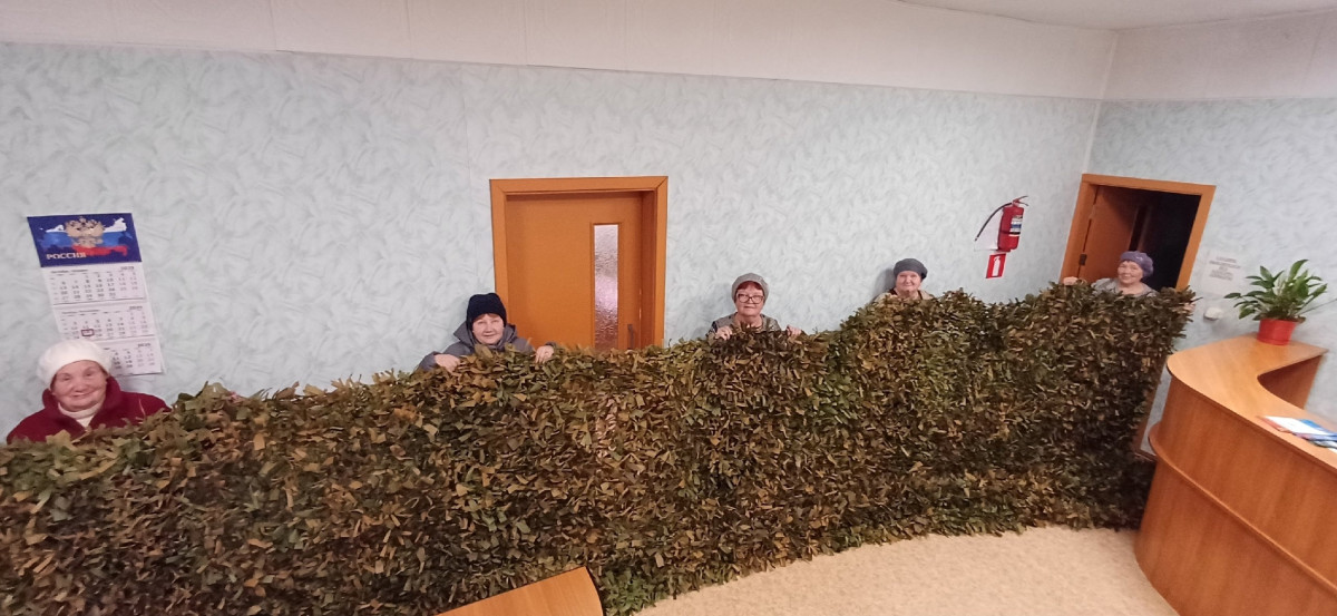 25 ноября жители поселка Белогорский Холмогорского района Архангельской области подготовили маскировочные сети для передачи руководителю Холмогорского районного отделения “БОЕВОГО БРАТСТВА” Елене Стефанишиной. Она организует работу и поставляет необходимые материалы. Эти сети предназначены для защиты военнослужащих, выполняющих боевые задачи в зоне СВО.