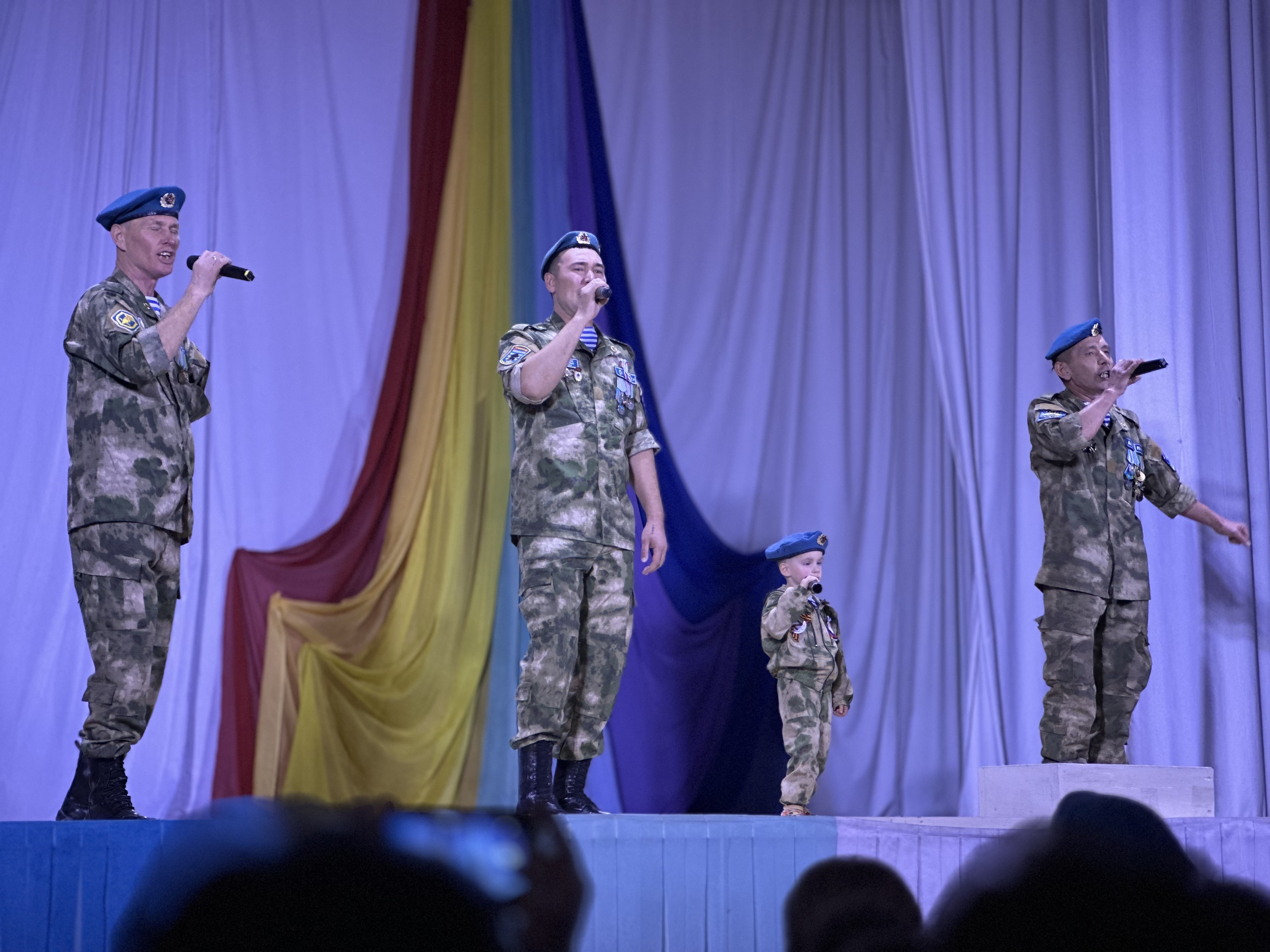 Гостями стали матери и жены десантников. На сцене выступили ансамбль «Крылатая пехота», состоящий из ветеранов ВДВ и участников СВО, чьи песни, пронизанные мужеством и патриотизмом, всегда находят отклик в сердцах слушателей, а также творческие коллективы ДК «Октябрь».