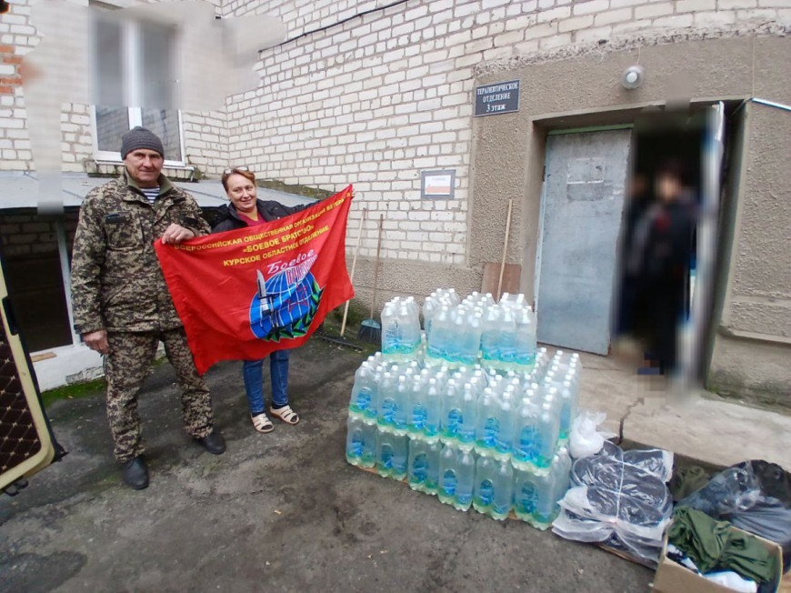1 декабря Леонид Полянский из Курского отделения “БОЕВОГО БРАТСТВА” доставил в один из приграничных госпиталей бутилированную воду, куртки, носки, футболки, флисовые костюмы, медикаменты, предметы личной гигиены, продовольствие.