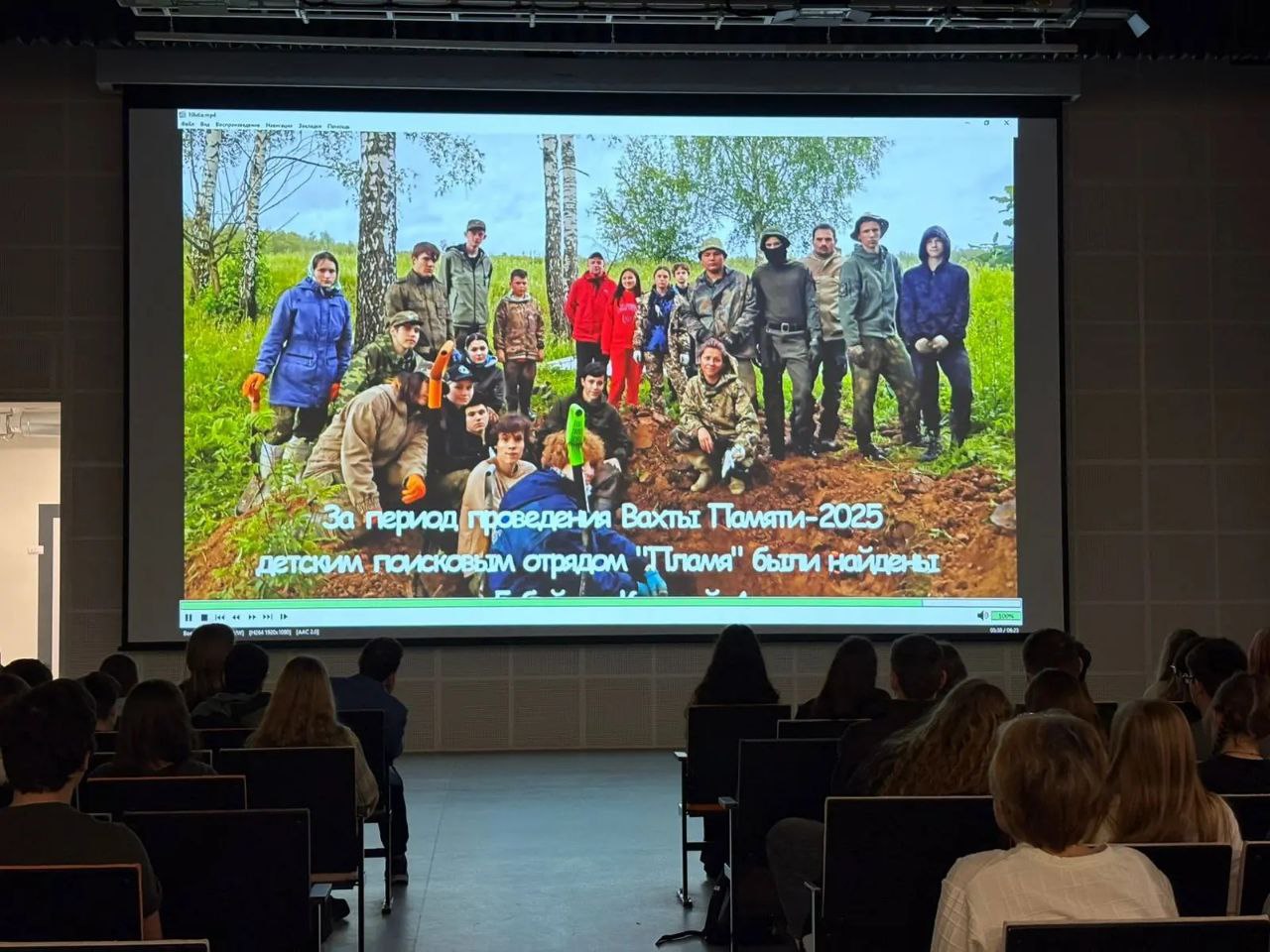 Мероприятие состоялось в преддверии Дня воинской Славы — Дня Неизвестного солдата. В ходе встречи участники отряда рассказали учащимся о поисковом движении России, познакомили школьников с деятельностью поискового отряда «Пламя», показали видеоролик о пяти красноармейцах, которых поисковики обнаружили во время «Вахты Памяти 2025».
