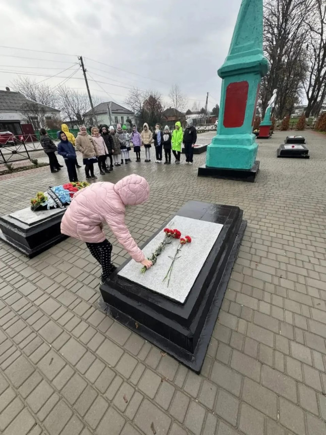После линейки гости вместе с учащимися возложили цветы на братскую могилу.