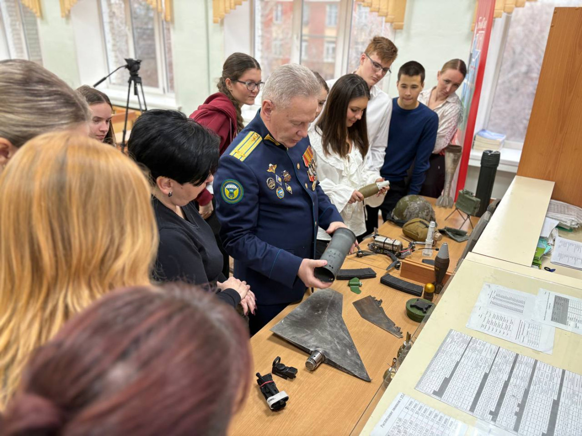Ветеран рассказал учащимся об истории высших государственных наград России и их преемственности, о героях разных эпох, защищавших Отечество, а также о земляках, удостоенных государственных наград. В ходе встречи он поделился опытом службы в зоне Специальной военной операции и рассказал о современных героях.