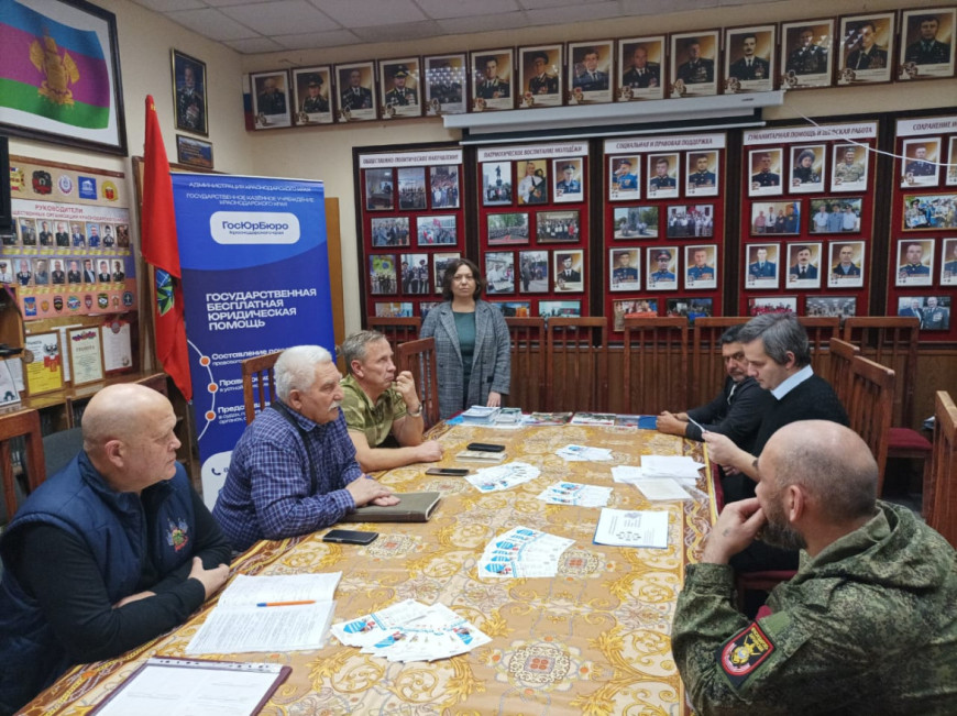 Встречу организовали руководитель правления Михаил Кондратьев, юрист Фуркат Азимов и председатель краевого отделения организации семей погибших защитников Отечества Светлана Посадская совместно со специалистами Госюрбюро Краснодарского края Станиславом Томилиным и Анной Бондаренко.