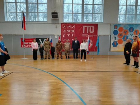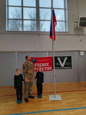Перед началом соревнований право поднять флаг Российской Федерации было предоставлено участнику СВО, ветерану Белевского отделения «БОЕВОГО БРАТСТВА» Александру Алешину, которого поддержали его сыновья Юрий и Александр.