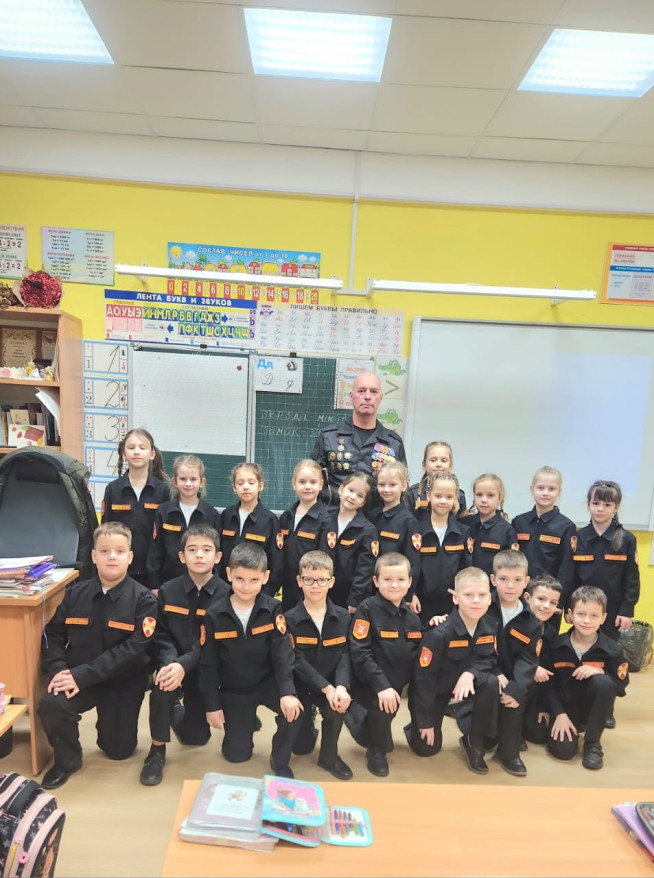 Услышали кадеты и рассказ о Валерии Енине, бывшем сотруднике ОМОН «Бастион». Он стал штурмовиком и участвовал в Специальной военной операции. За свои подвиги он был удостоен высшего звания Российской Федерации — Герой России.