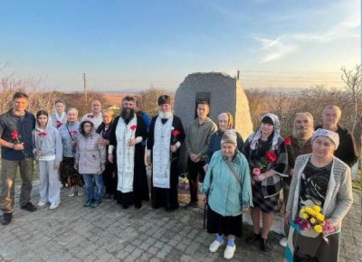 Затем на месте захоронения жителей, погибших в фашистских душегубках, протоиерей Александр Карпенко совершил заупокойные литии.