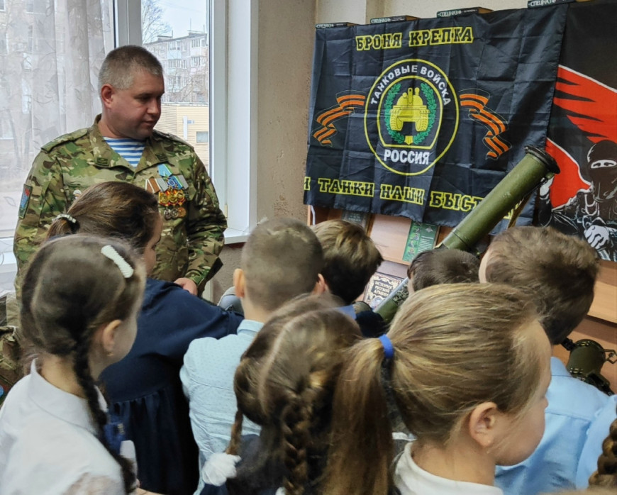 Ветеран рассказал ребятам о работе “БОЕВОГО БРАТСТВА”, о том, как активисты организации доставляют гуманитарную помощь в зону СВО.