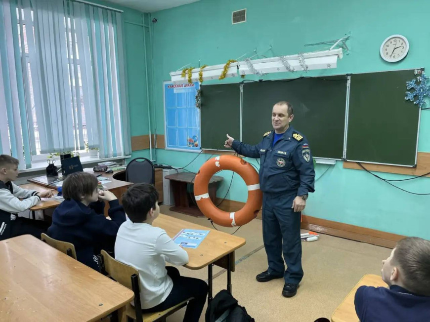 Он напомнил школьникам о мерах безопасного поведения на водоемах в зимний период, рассказал о способах и средствах спасения людей на водных объектах.