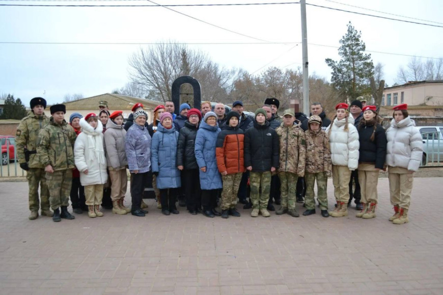К обелиску пришли представители районной администрации, ветераны боевых действий, военный комиссар, члены Енотаевского местного «БОЕВОГО БРАТСТВА», районного Совета ветеранов, казаки отряда «Ермак», юнармейцы отряда «Единство» и жители села.