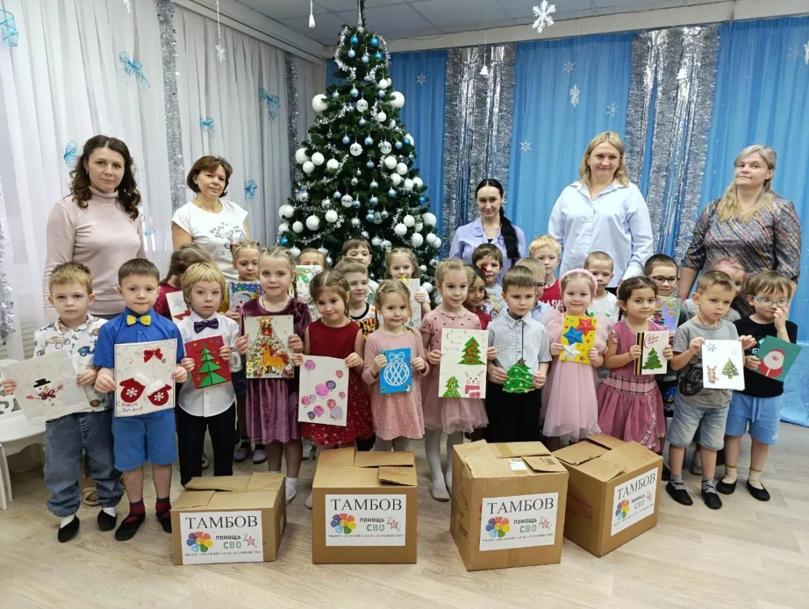20 декабря в пункт приёма гуманитарной помощи Тамбовского «БОЕВОГО БРАТСТВА» привезли новогодние подарки для бойцов СВО от детского сада №1 «Семицветик».