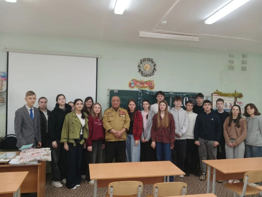 Во время урока А. Сакауов рассказал учащимся о подвигах героев войн разных времен, привел различные исторические факты о русских солдатах и офицерах, рассказал о своей службе в Афганистане, ответил на многочисленные вопросы учащихся, которые касались СВО.