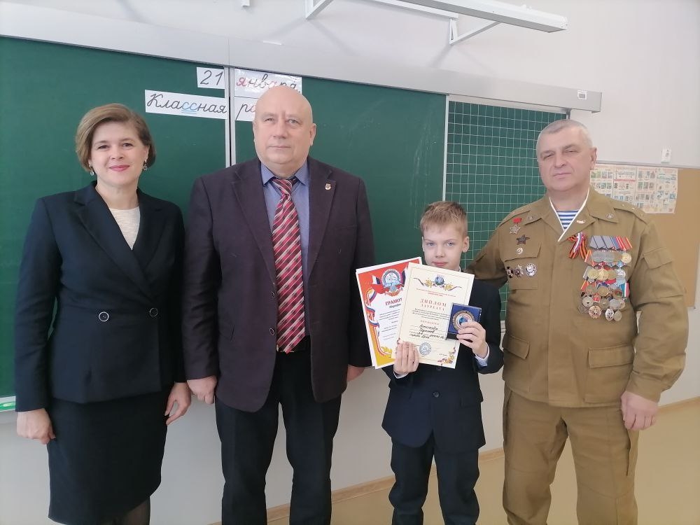 21 января в Орле руководитель Орловского областного отделения «БОЕВОГО БРАТСТВА», Александр Каменев и Александр Ветров, ветеран боевых действий в Афганистане, кавалер Ордена «Красной Звезды» и медали «За Отвагу» вручили в торжественной обстановке в присутствии всего класса и директора школы Ларисы Карасевой учащемуся 3-е класса школы №53 Александру Трутневу медаль и диплом лауреата победителя Всероссийского патриотического конкурса творческих работ «Память сильнее времени», который ежегодно проводит Всероссийская общественная организация ветеранов «БОЕВОЕ БРАТСТВО».
