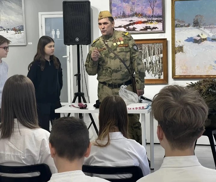 23 января в выставочном зале Благовещенска Амурской области ветеран боевых действий, участник СВО Анатолий Шанин провёл встречу со школьниками 12-13 лет по теме «Воспитание молодёжи. История России и Малой Родины».
