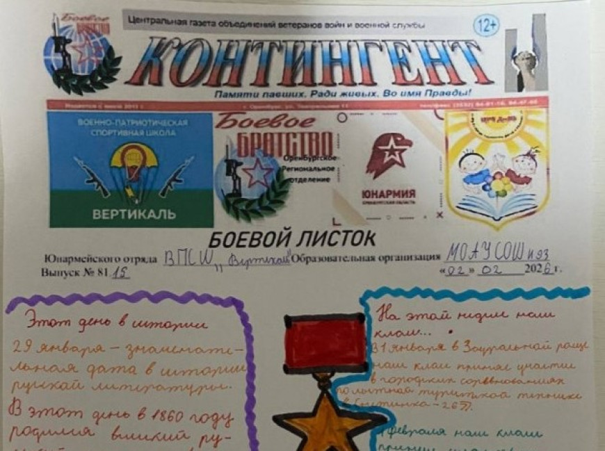 4 февраля в Оренбурге вышли в свет новые выпуски боевых листков военно-патриотической спортивной школы «Вертикаль».