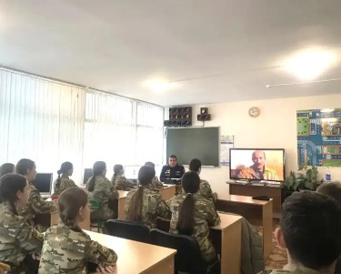 Он рассказал ребятам о подвиге солдат при обороне Севастополя в годы Великой Отечественной войны и продемонстрировал вооружение и предметы быта противоборствующих сторон. Говорил о том, что Севастополь был одним из первых городов, встретивших войну.
