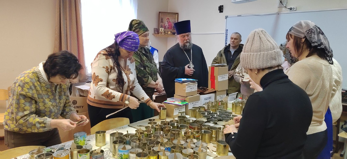 За общим делом родные погибших героев смогли пообщаться со священнослужителем и найти слова поддержки друг для друга. Вместе они приняли участие в создании блиндажных свечей.