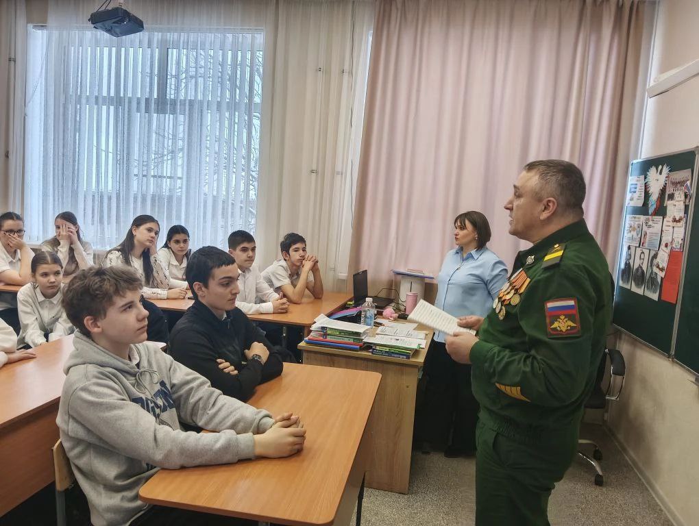 Провёл их ветеран Адыгейского отделения «БОЕВОГО БРАТСТВА» Дмитрий Головатый. Слушателями стали ученики 6, 7, 8, и 9-х классов.