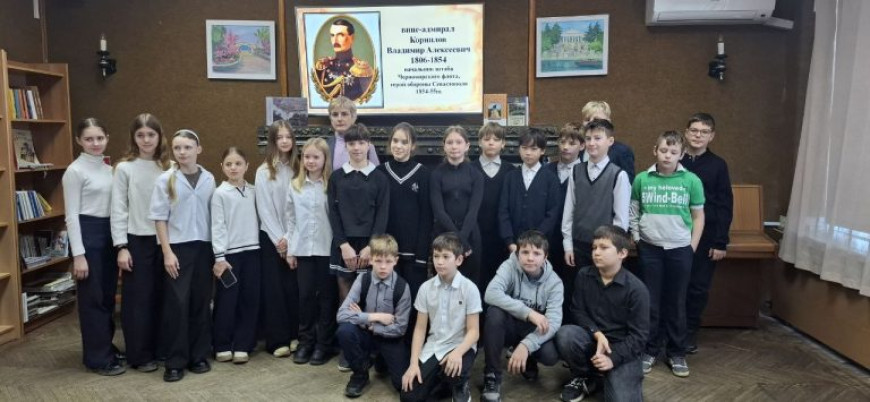 Во время урока мужества школьники совершили виртуальную прогулку по памятным местам Севастополя, связанным с именем легендарного вице-адмирала, участника Первой обороны Севастополя.