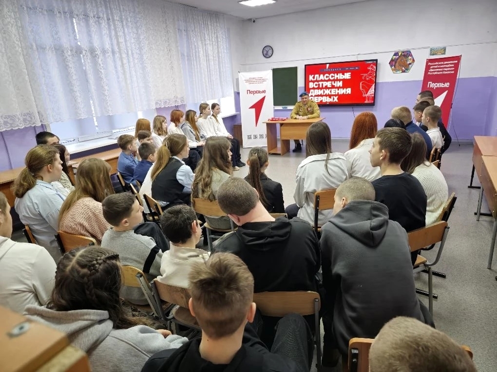 Со школьниками встретился руководитель Саяногорского отделения «БОЕВОГО БРАТСТВА», участник Афганской войны Вадим Дорошенко.